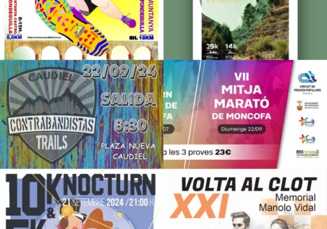 10K-5K Nocturn VinaròsMitja Marató MoncofaVolta al Clot de BurrianaTrail per muntanya Castro d'AlfondeguillaContrabandistas Trail CaudielMarxa a peu entreparets Vilafranca23/09/2024 -
