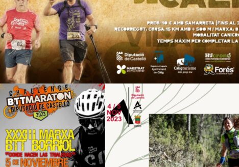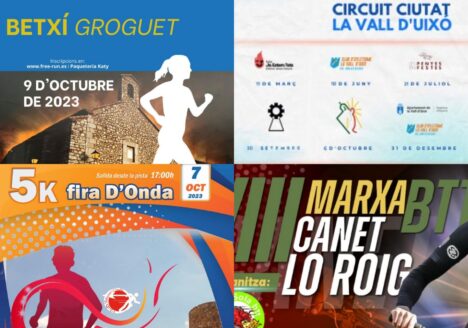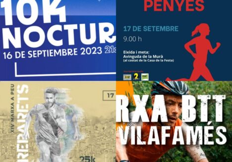 5k i 10k nocturn Llangostí de VinaròsMarxa a peu Entreparets VilafrancaMarxa BTT Cudol Roig Vilafamés5K de les penyes Vila-real18/09/2023 -